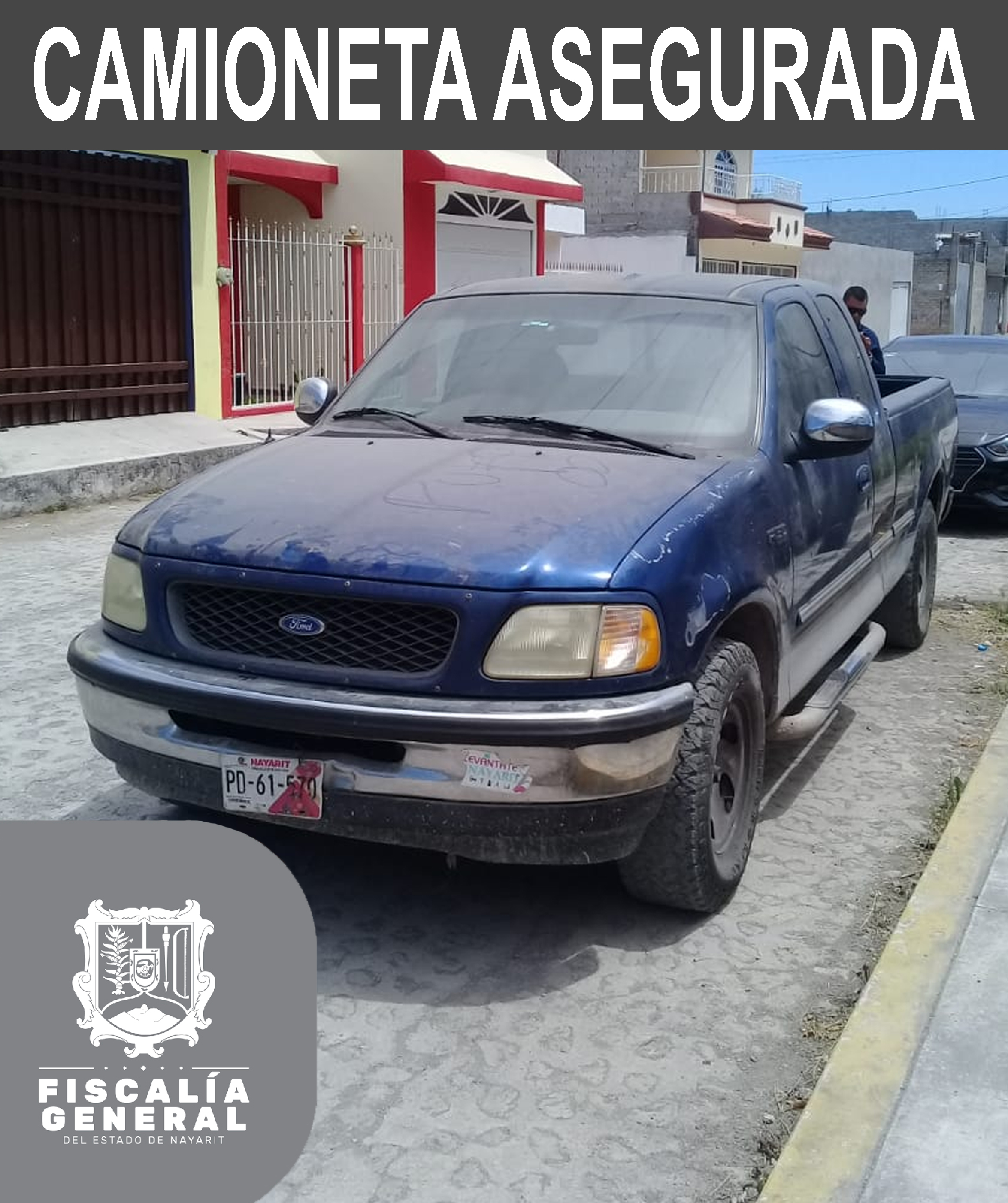 En la colonia Jardines del Valle de la ciudad de Tepic, personal de la División de Robo de Vehículos logró asegurar una camioneta que se encontraba abandonada, de la marca Ford en color azul, con placas de circulación PD 61 570 del estado de Nayarit....
