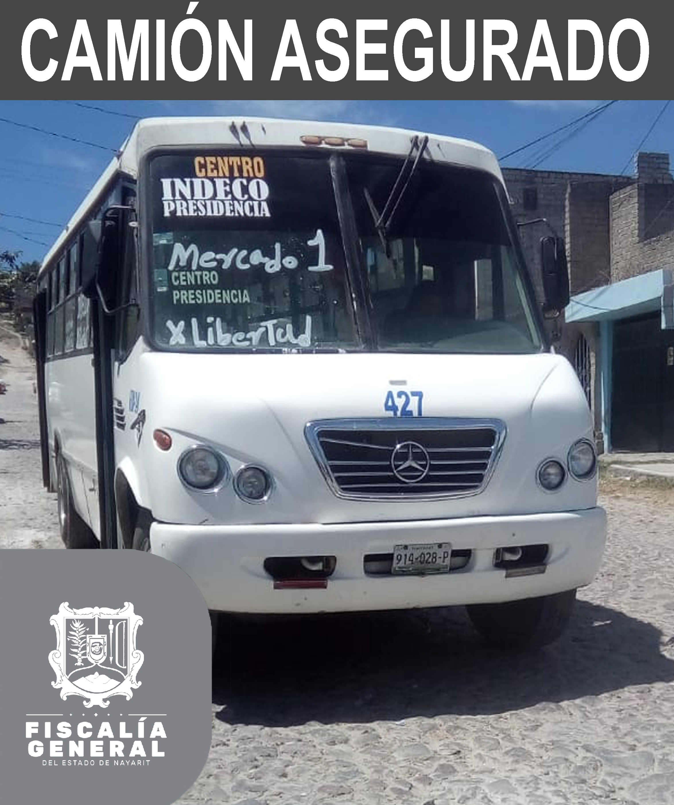 En la colonia Reforma de la capital nayarita, personal de la División de Asaltos Carreteros logró asegurar un vehículo de la marca Mercedes Benz, tipo minibús en color blanco, con placas de circulación 914 028P del servicio público, ruta Indeco, co...