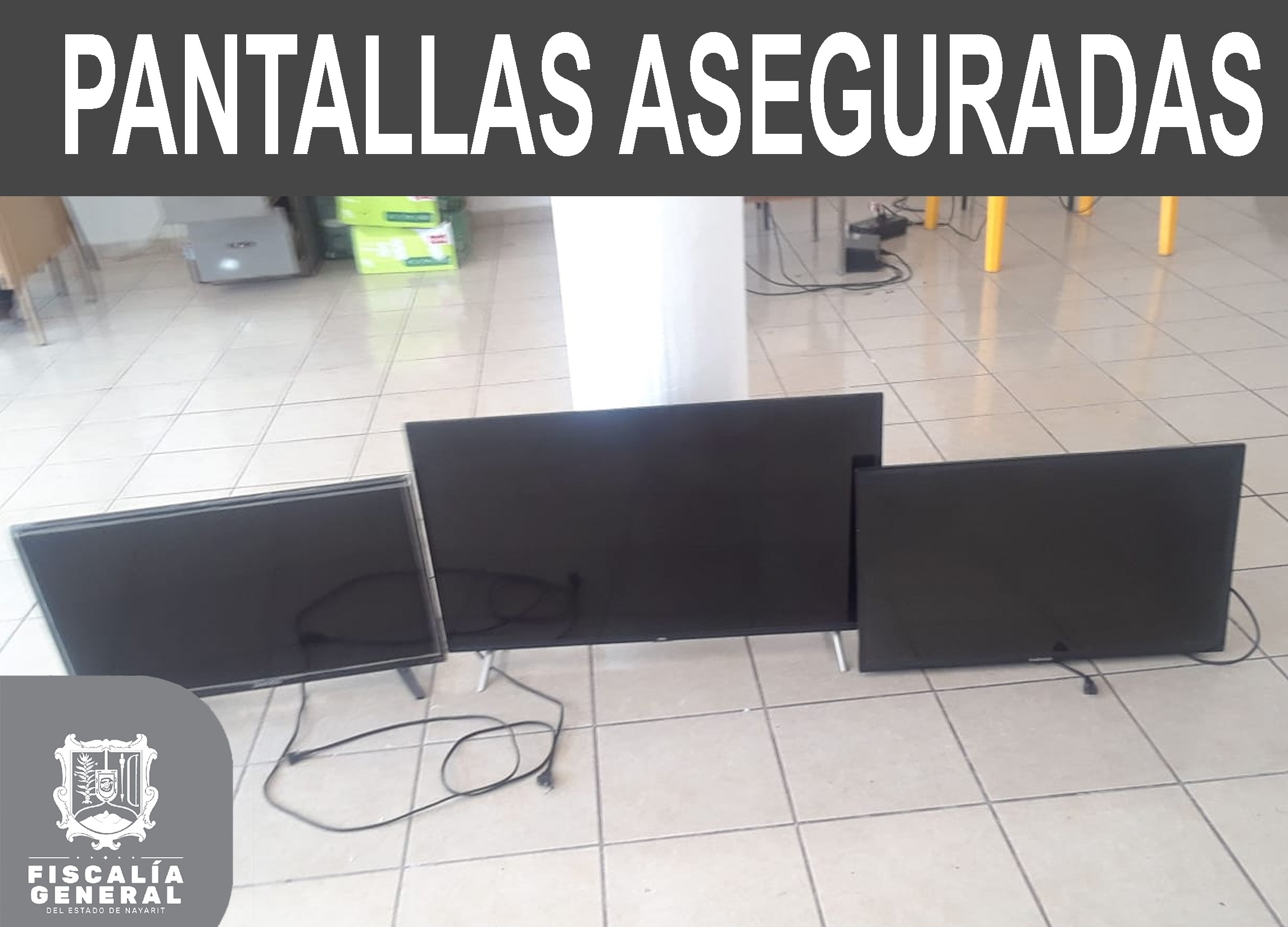 Elementos de la Policía de Investigación Criminal adscritos al municipio de Xalisco aseguraron tres pantallas de Televisión que habían sido sustraídas de un domicilio ubicado en el municipio en mención. Se trata de dos aparatos de la marca Daewoo d...