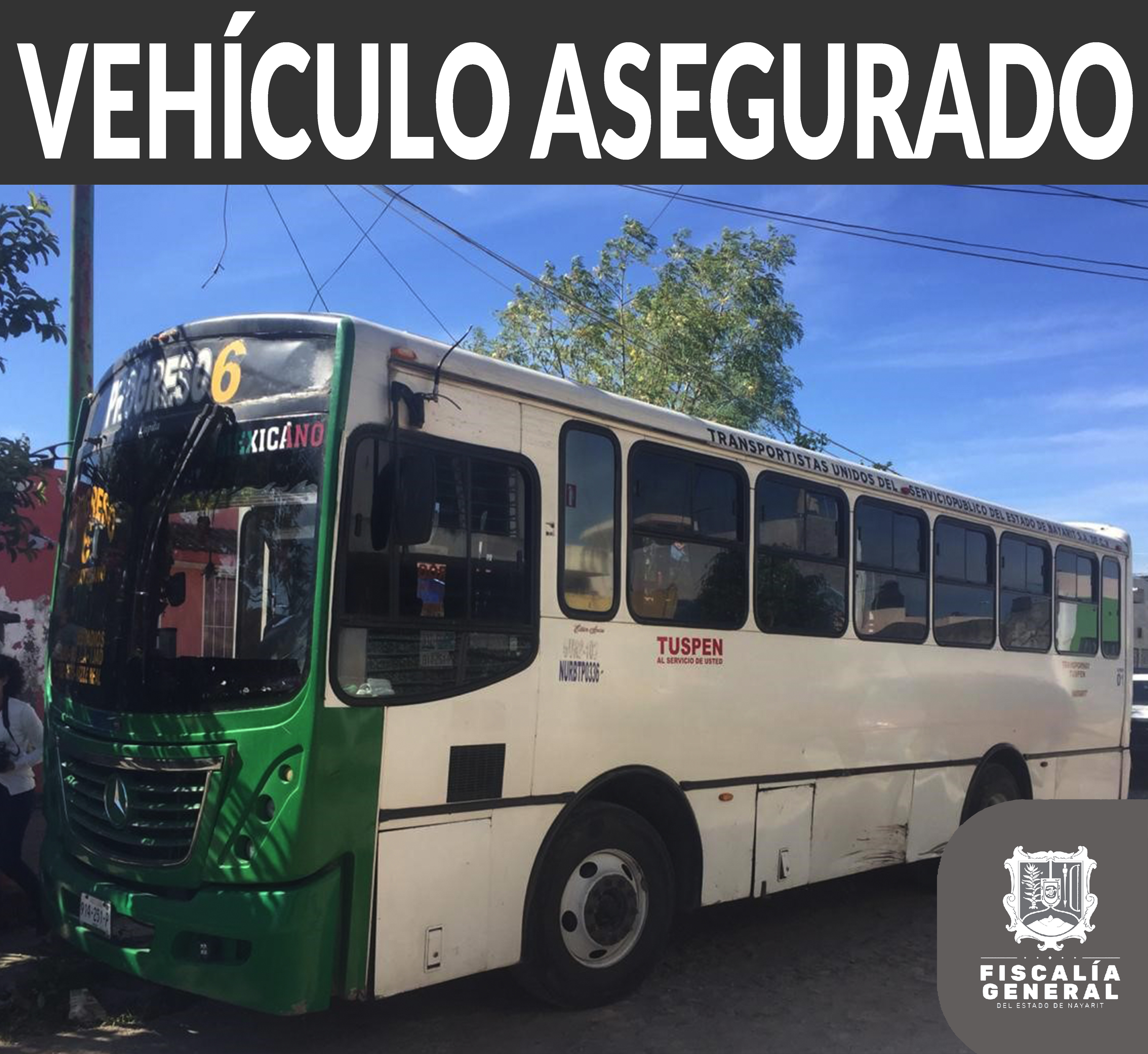 Elementos de la Unidad de Asaltos Carreteros aseguraron un camión urbano al interior de la colonia Villas del Molino de la ciudad de Tepic, mismo que está relacionado con el delito de fraude, siendo dicha unidad de la marca Mercedes Benz, modelo 2012, ...