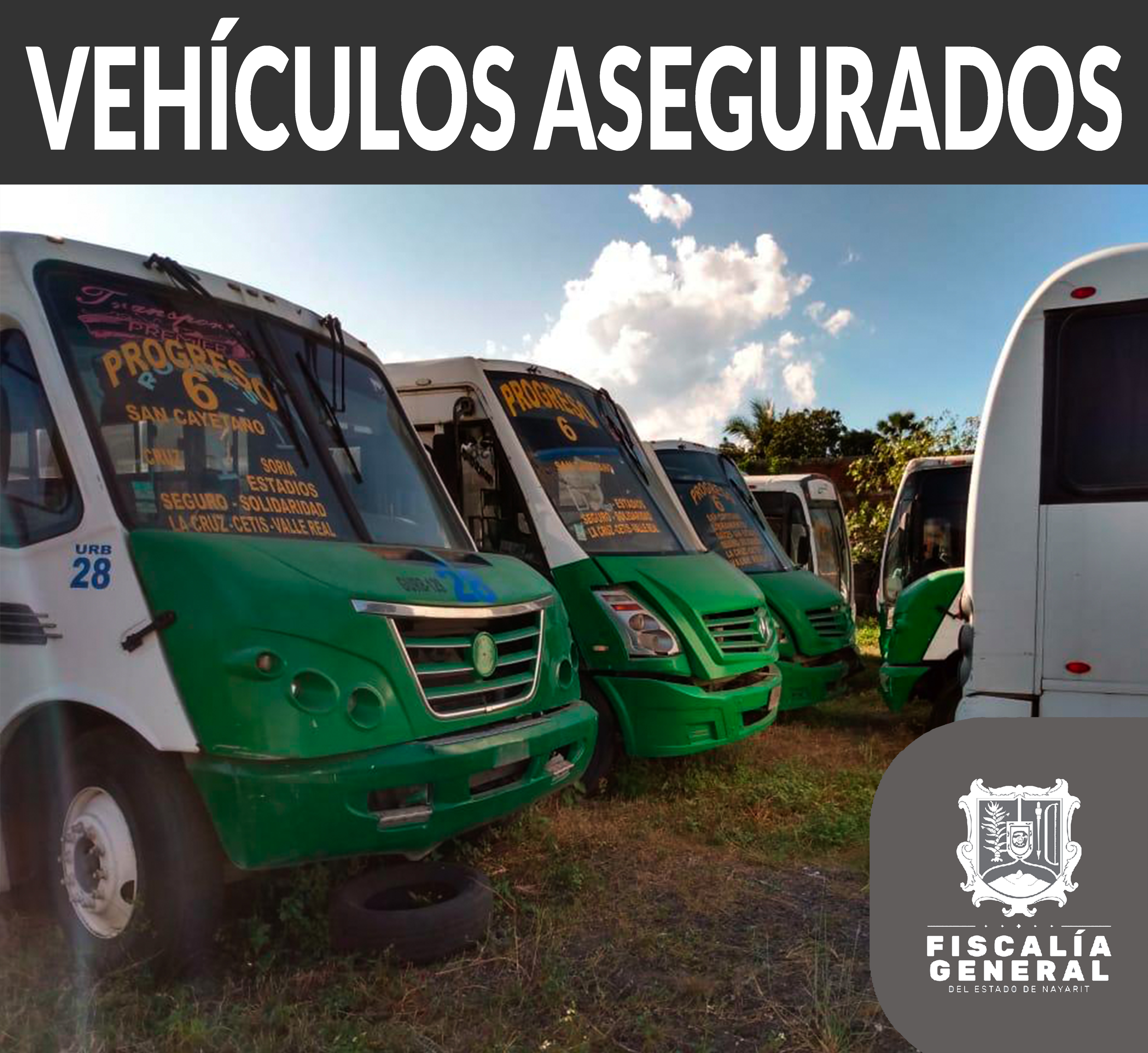 Elementos de la Unidad de Asaltos Carreteros aseguraron trece camiones urbanos en diferentes puntos de la ciudad de Tepic, los cuales están relacionados con el delito de fraude, siendo dichas unidades de la marca Mercedes Benz, modelo 2012, ruta Progres...