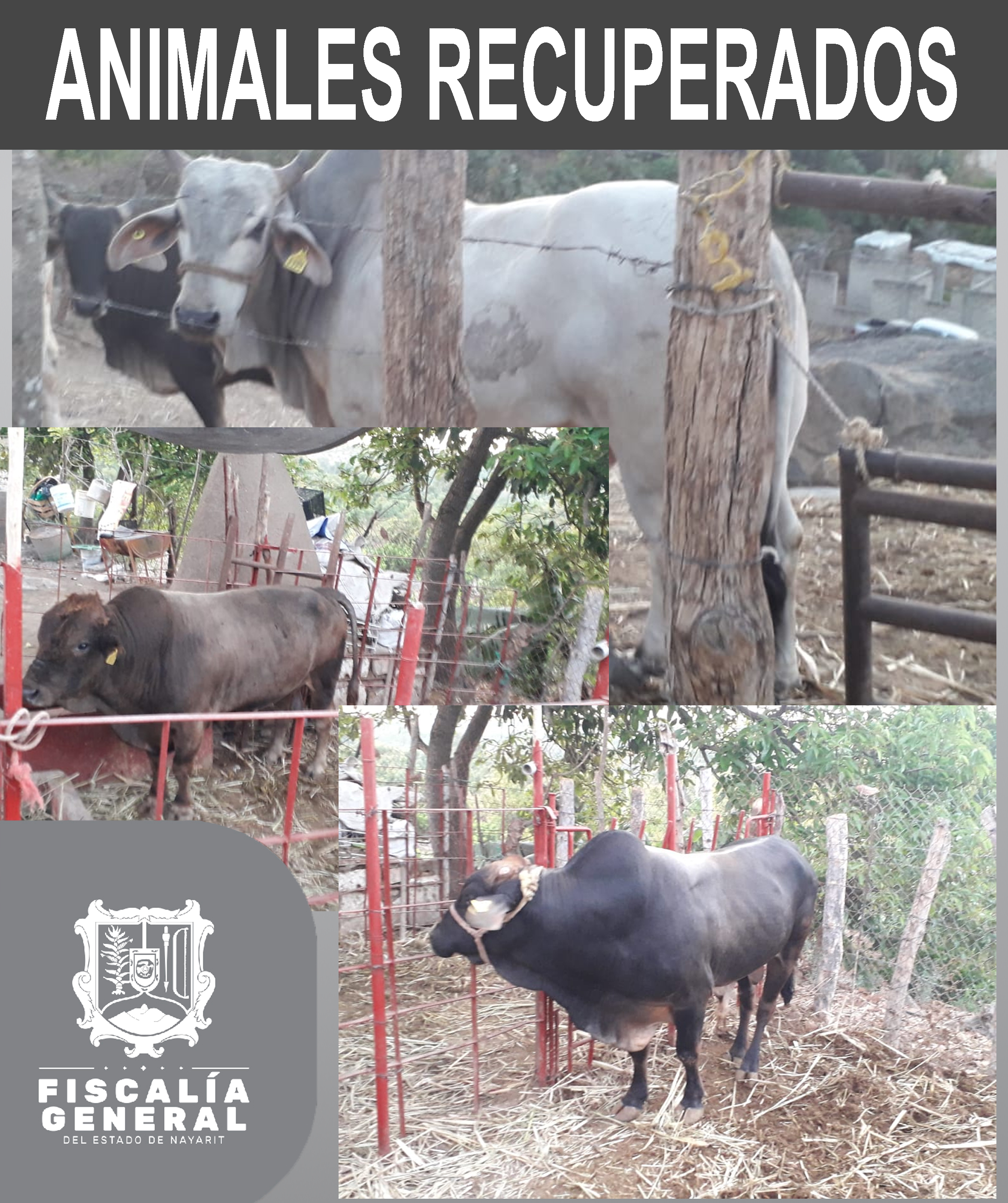En atención a la denuncia NAY/TEP-III/8762/18, personal de la División de Abigeatos se trasladó en compañía de Peritos y Ministerio Público al poblado de La Fortuna, municipio de Tepic, donde se localizaron tres machos semovientes vacunos, -dos sui...