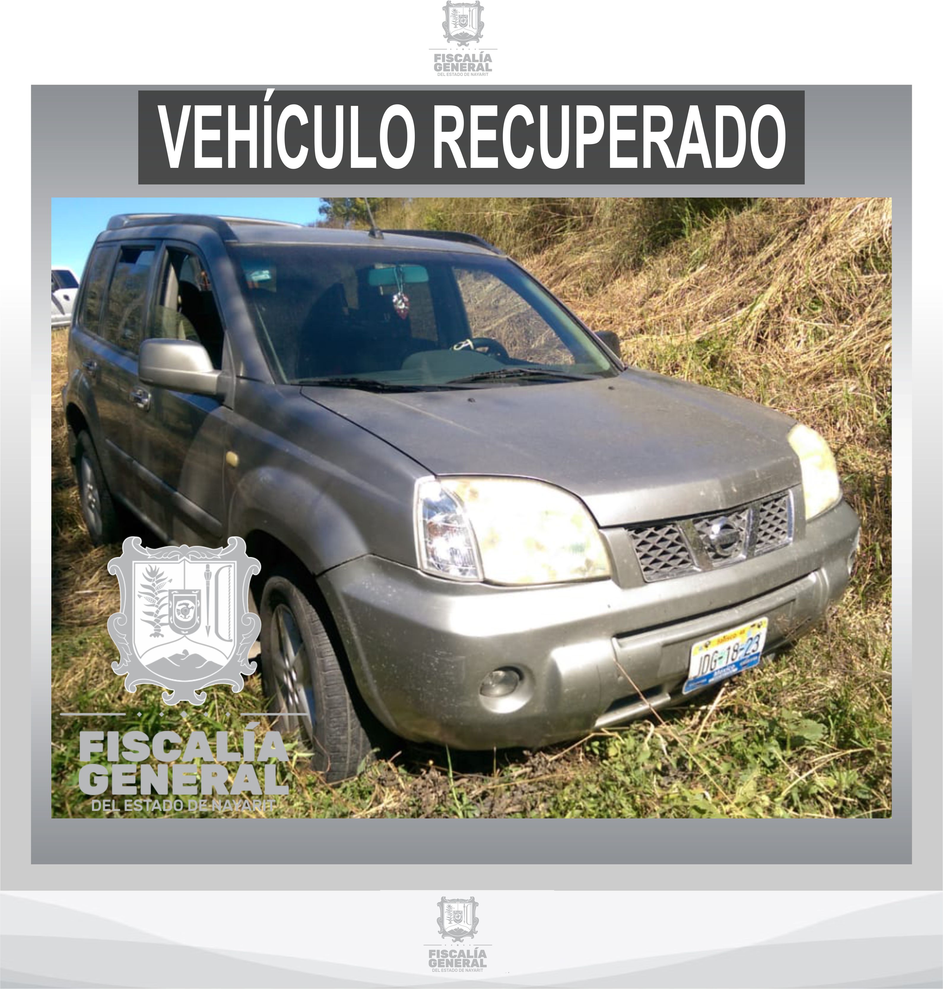 Personal de la División de Asaltos Carreteros adscrito a la Fiscalía General del Estado de Nayarit, logró recuperar un vehículo de la marca Nissan, tipo X-trail, color arena, con placas de circulación JDG-18-23 del estado de Jalisco, los hechos ocur...