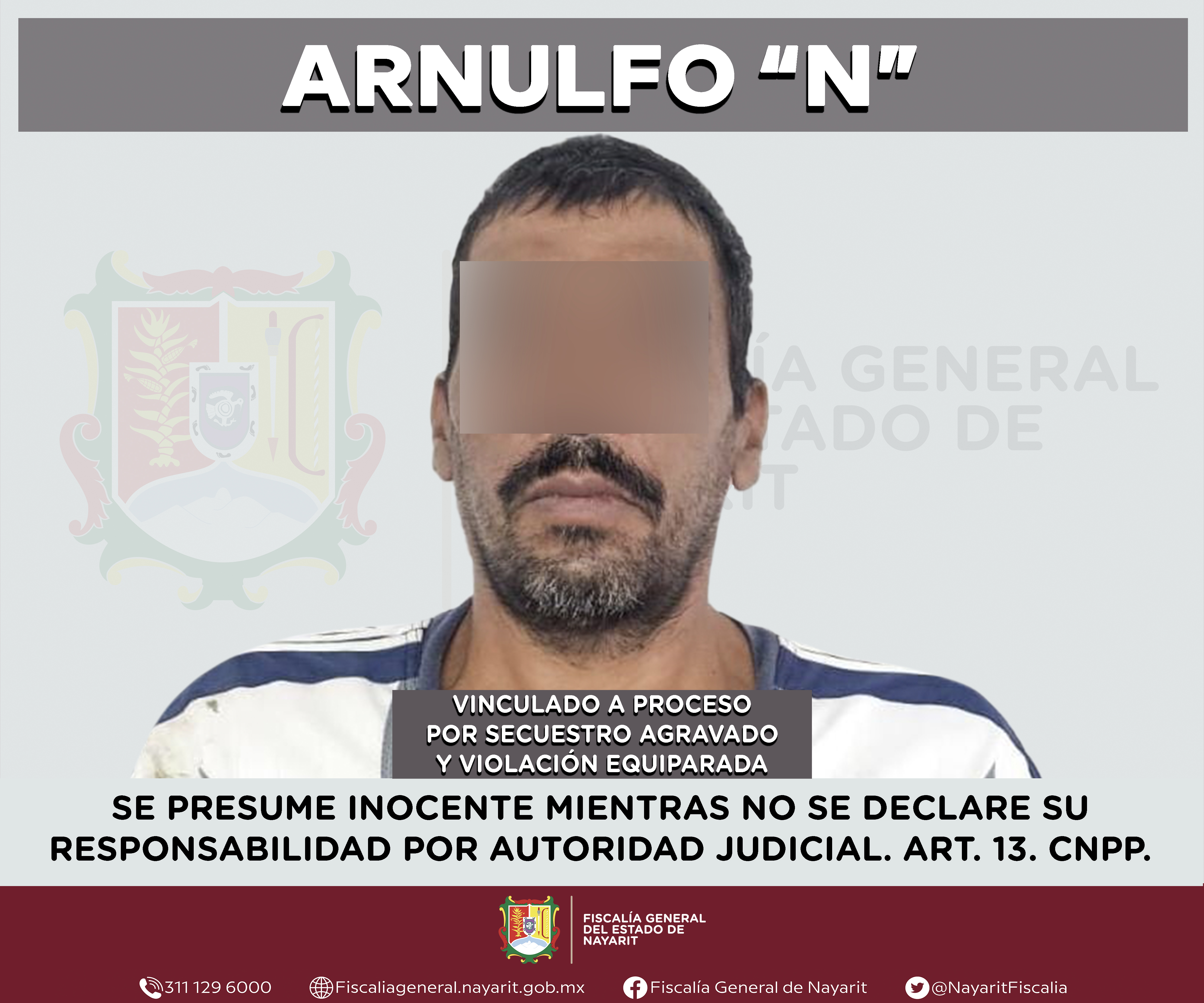 Tepic, Nayarit; 18 de febrero de 2026.- Una Jueza de control determinó vincular a proceso al imputado Arnulfo “N”, por los delitos de secuestro agravado y violación equiparada, contemplados en los artículos 9 fracción inciso C, en relación con el artículo 10 fracción II, incisos B y D de la Ley General para Prevenir y Sancionar los Delitos en Materia de Secuestro, así como el artículo 295 fracción I, en relación con el artículo 294 del Código Penal vigente en el estado de Nayarit.